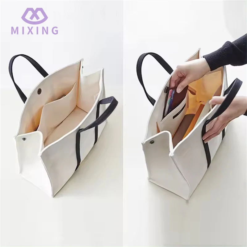 ミキシング社のハンドル付き無地キャンバストートバッグに使用されているキャンバス素材は、厚みはありますが、かさばりません。柔らかくてしなやかな一部の薄いキャンバスバッグとは異なり、物を入れた後もある程度の硬さを維持でき、圧力がかかっても物が変形せず、より規則的に見えます。