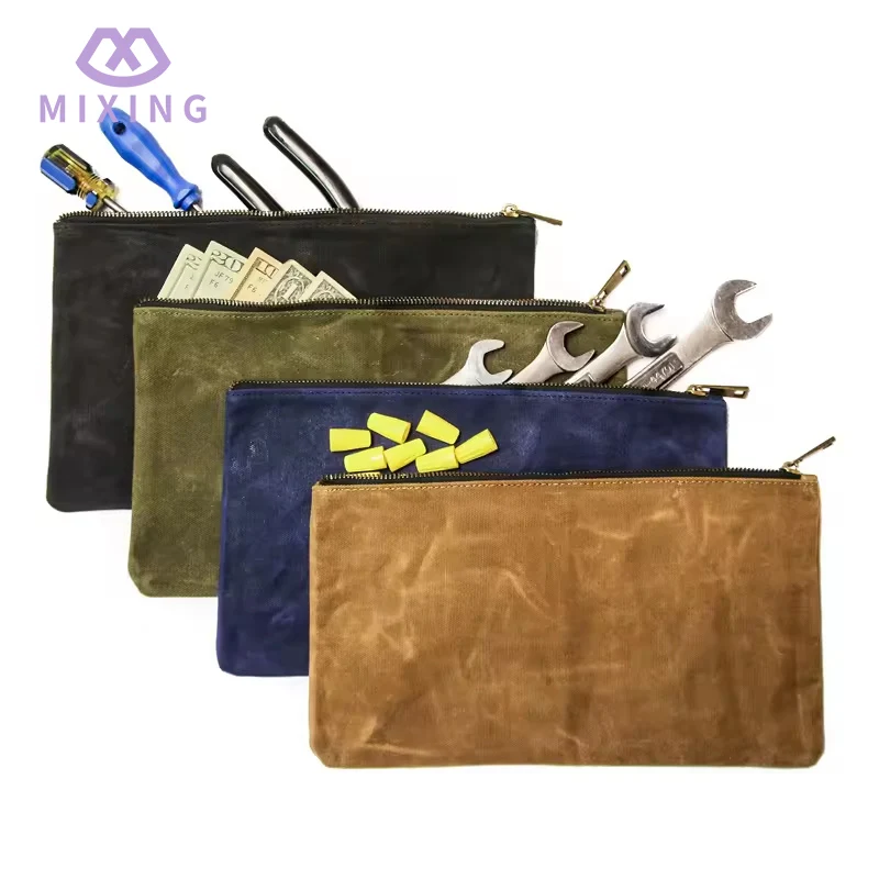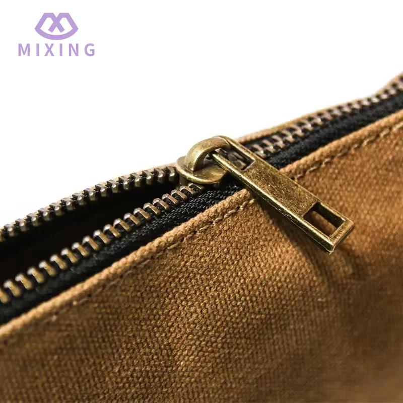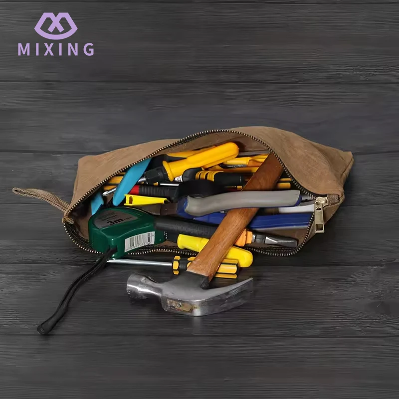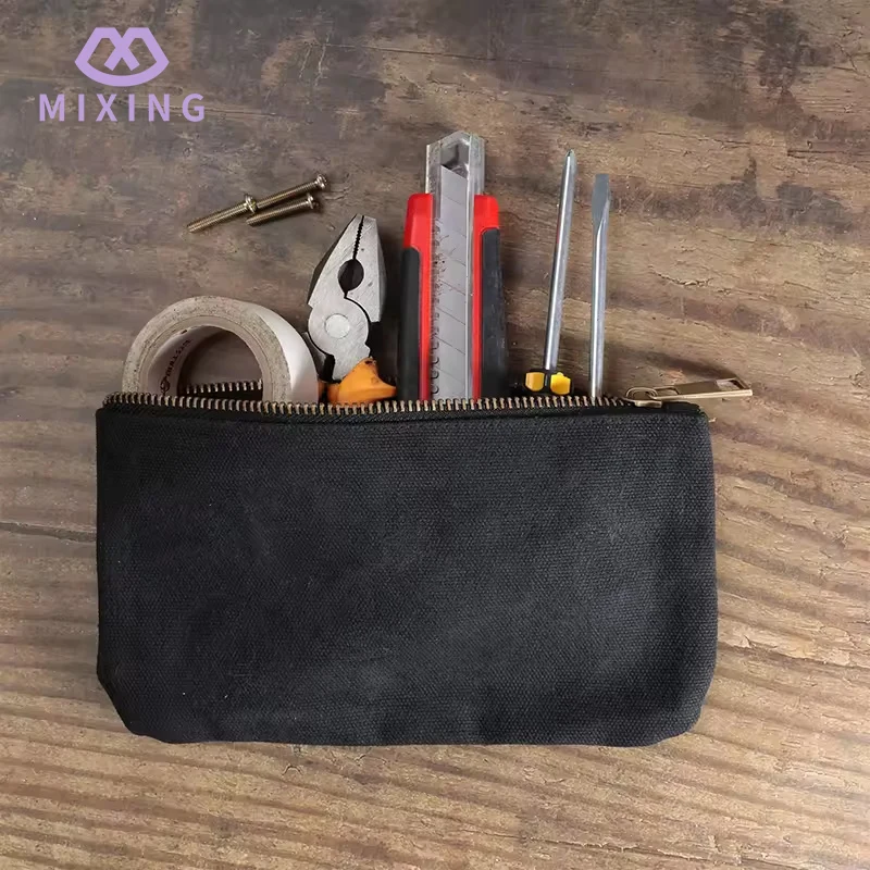 Mixingのチャイナワックスキャンバスツールポーチは、主に日常生活でよく使用される小さなツールを収納するために使用され、バッグ本体はジッパー開閉のデザインを採用しています。ジッパーは耐久性のある金属タイプで、引き閉めの際は非常にスムーズで、工具の多少の衝突による引っ掛かりがなく、ジッパーを閉じるとバッグの開口部を比較的しっかりと密閉できます。工具が揺れたり、中で落ちたりする心配はありません。